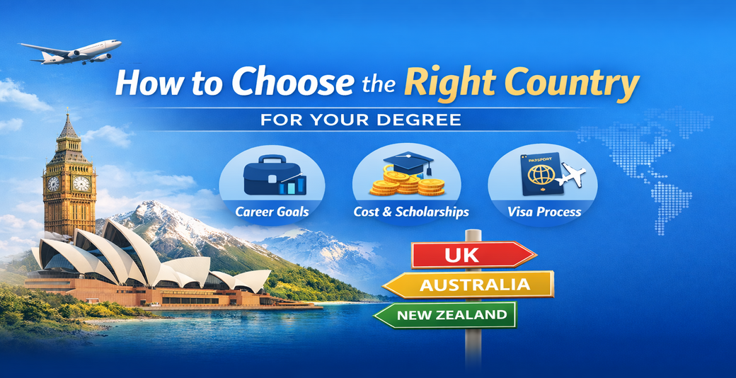 Choosing the right country for your higher education is one of the most important decisions in your academic journey. With popular study destinations like the UK, Australia, and New Zealand, students often feel confused about which option suits them best.