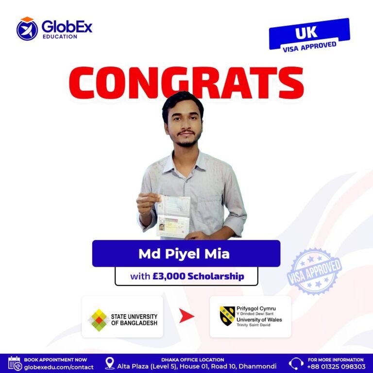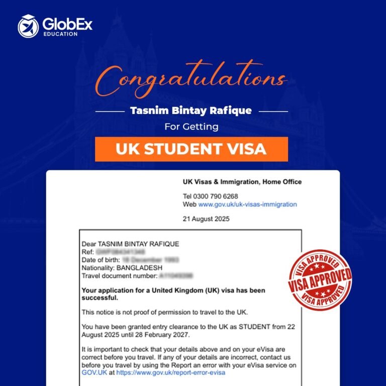 Our students are making their dreams come true across the UK, Australia, New Zealand, and beyond! With GlobEx Education’s expert guidance, they’ve earned scholarships and study visas to top universities around the globe.